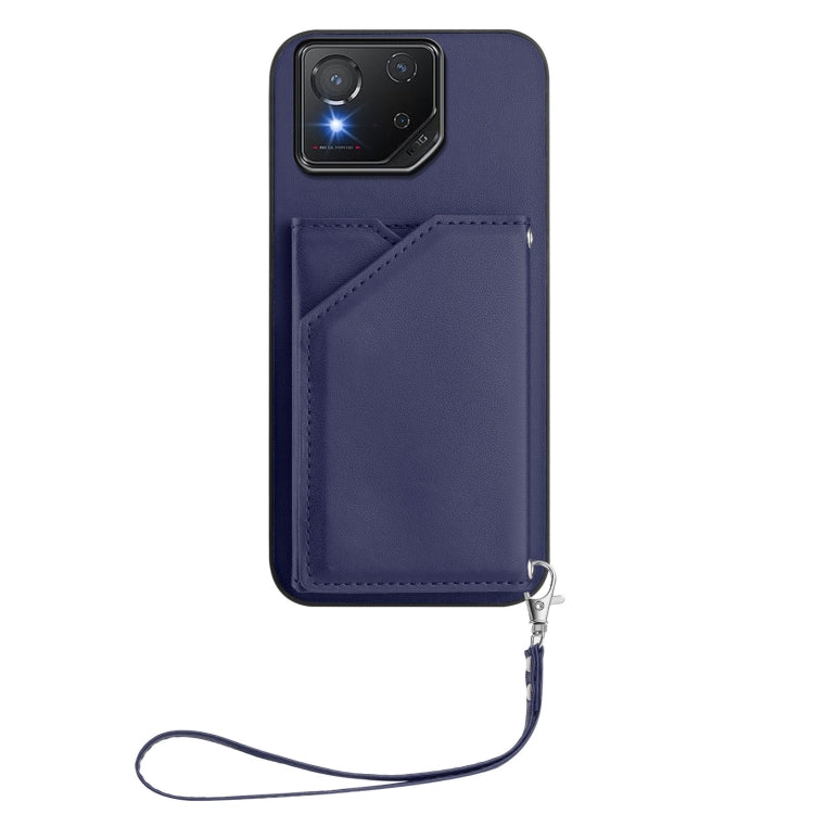 Estuche para Asus Rog Phone 8 Pro con 4 Ranuras para Tarjetas y Correa para Muñeca (Azul)
