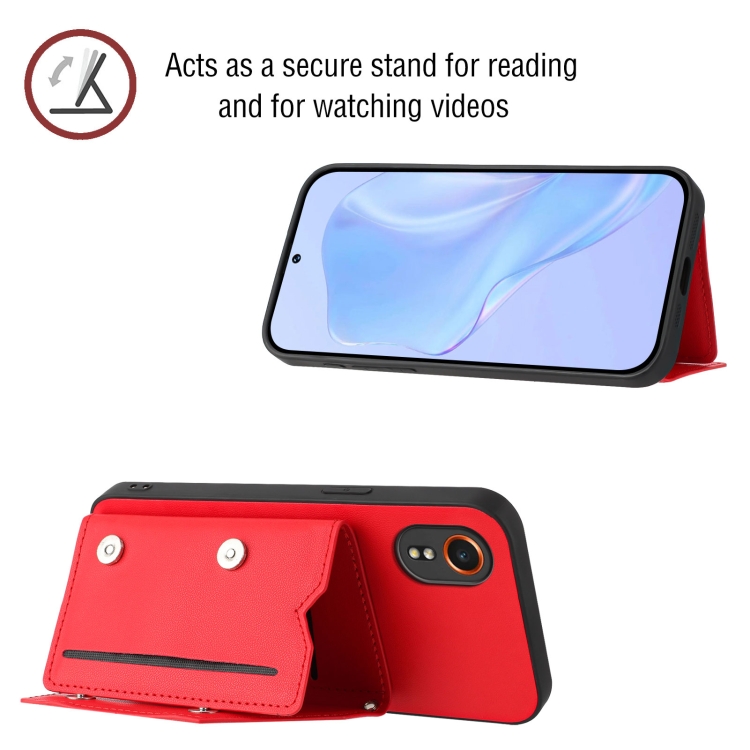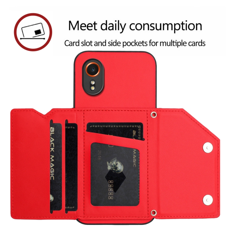 Estuche para Teléfono Samsung Galaxy Xcover 7 con 4 Ranuras para Tarjetas y Correa para la Muñeca (Rojo)