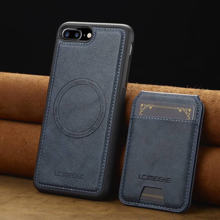 Estuche para Teléfono Lc.Imeeke Serie L3 con Funda para Tarjeta Rfid Desmontable Magsafe para iPhone 8 Plus/7 Plus (Azul)