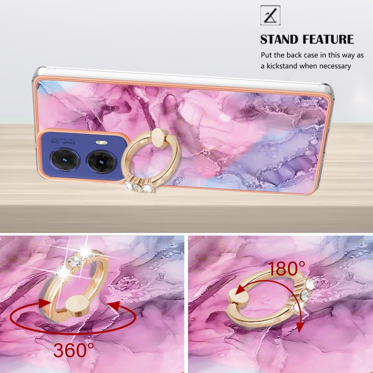 Estuche para Teléfono Motorola Moto G85 con IMD Doble Cara y Galvanoplastia Mármol (Rosa)