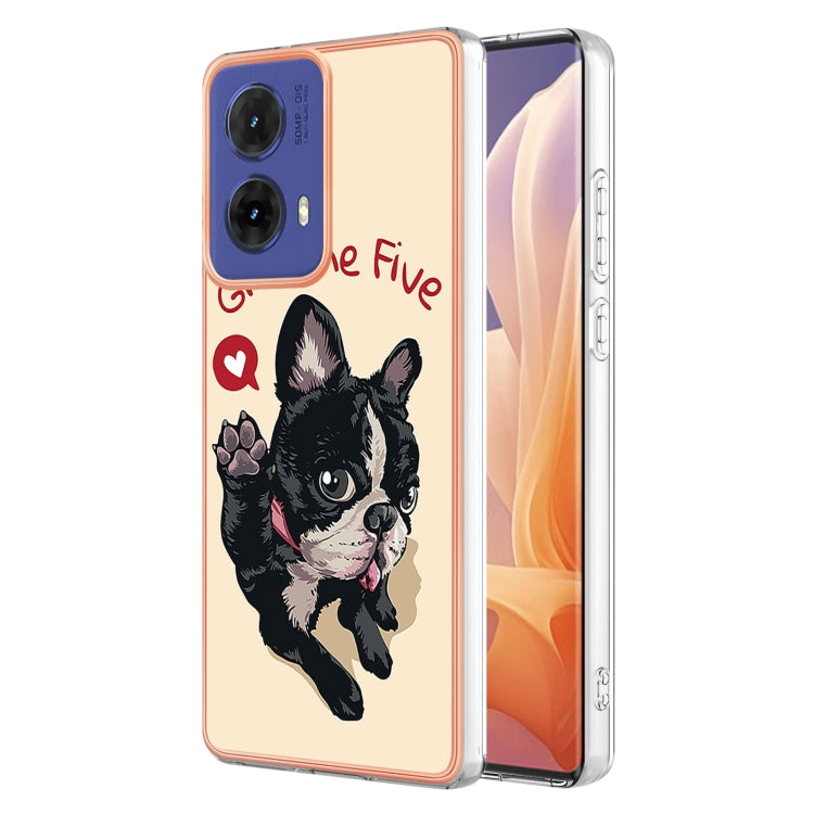 Estuche para Motorola Moto G85 con Revestimiento Electrolítico Mármol Doble Cara (Perro de la Suerte)