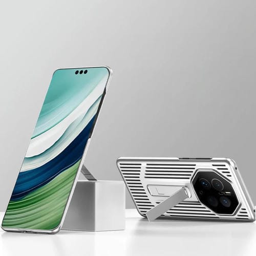 - 1x Estuche para Teléfono Huawei Mate 50 Pro con Soporte de Refrigeración (Blanco Plateado)