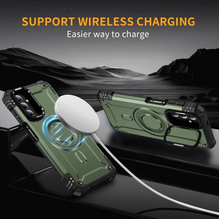 Estuche para Teléfono Samsung Galaxy A04S con Soporte para Lente Magsafe (Verde Militar)