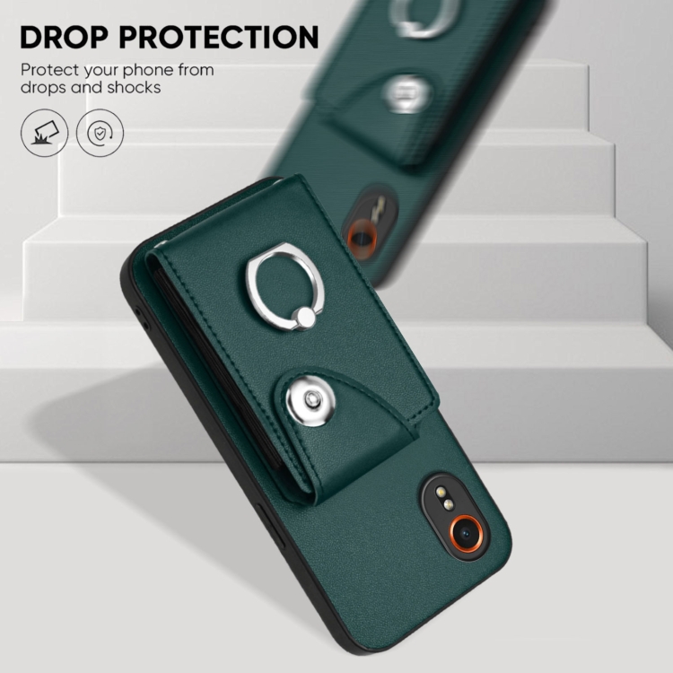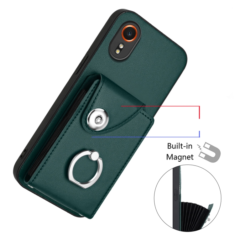 Estuche para teléfono Samsung Galaxy Xcover7 con tarjetero y anilla con cordón largo (Verde)