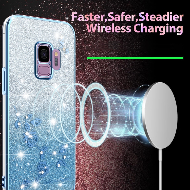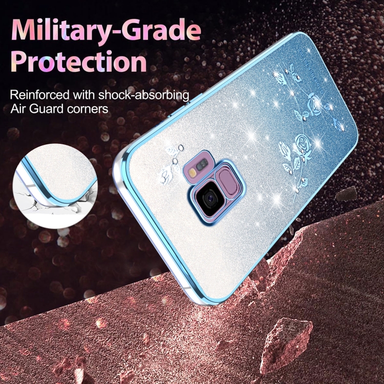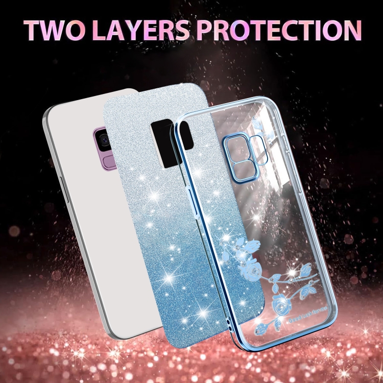 Estuche para Teléfono Samsung Galaxy S9 Diseño Flores Purpurina Degradada (Azul)