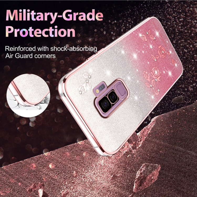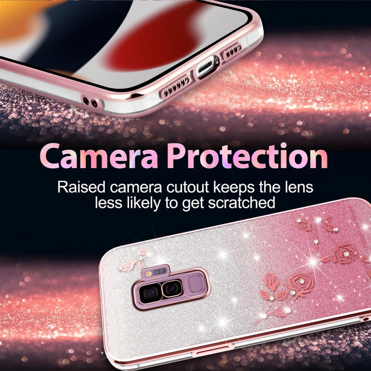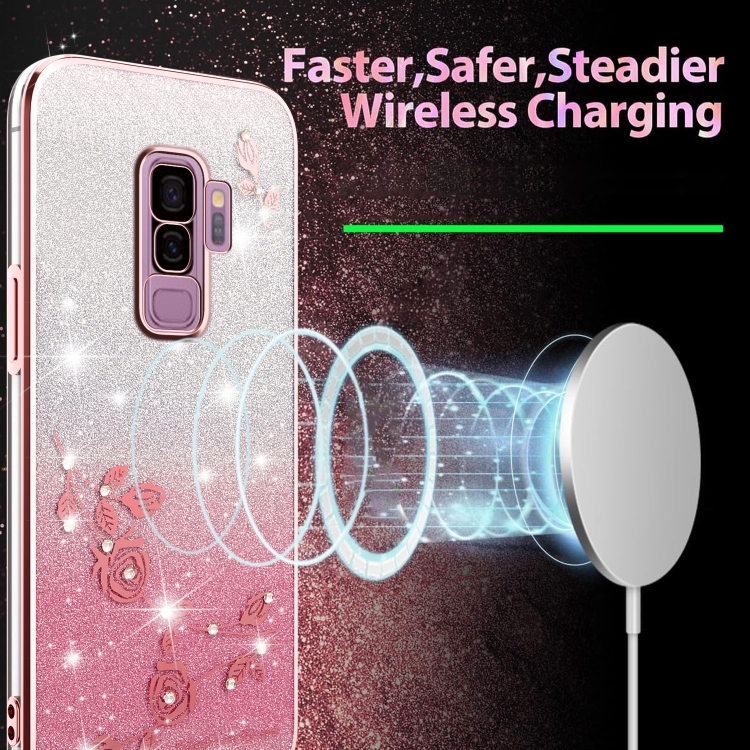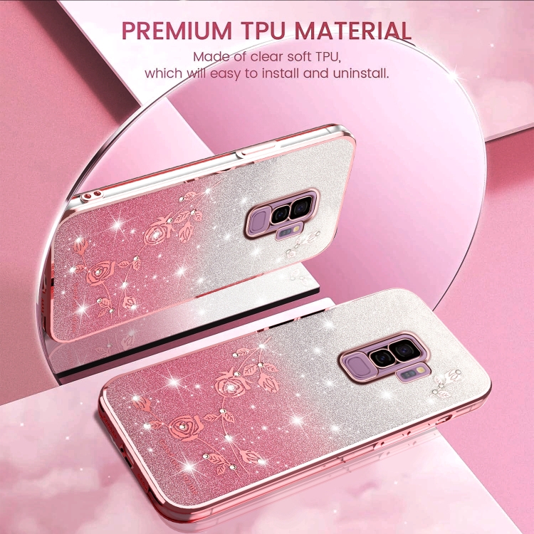 Estuche para Teléfono Samsung Galaxy S9+ con Diseño de Flores y Purpurina (Rosa)
