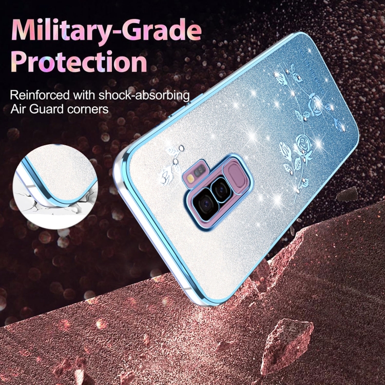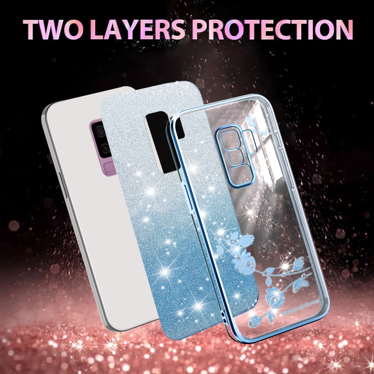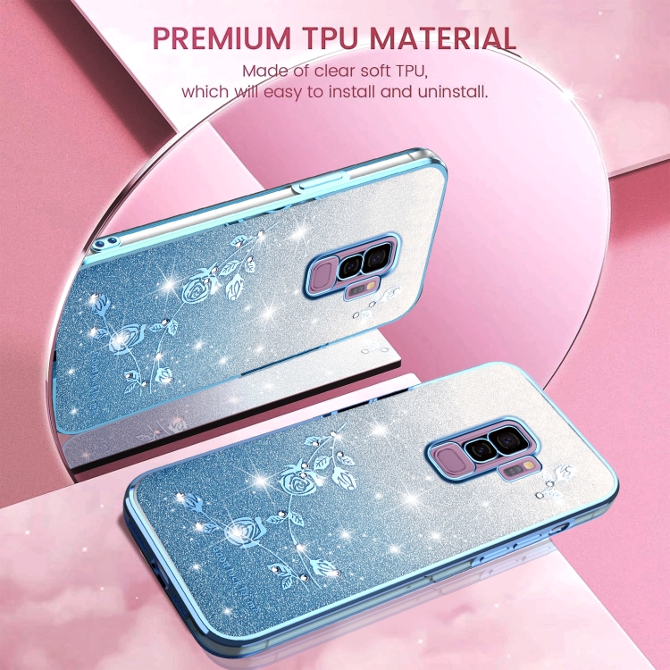Estuche para Teléfono Samsung Galaxy S9+ Diseño Flores Purpurina Degradada (Azul)