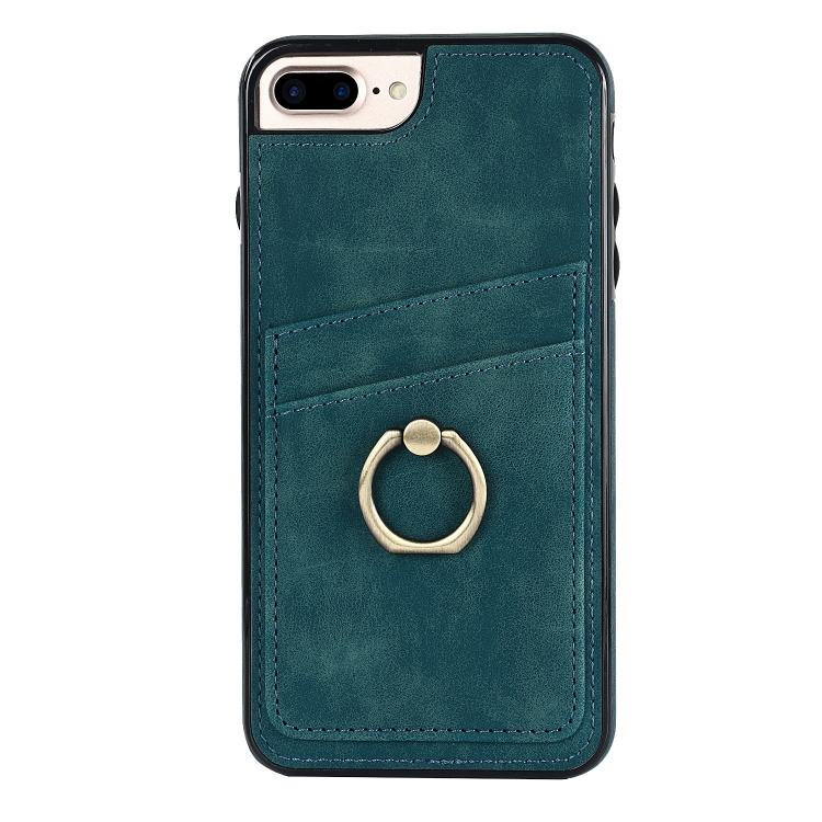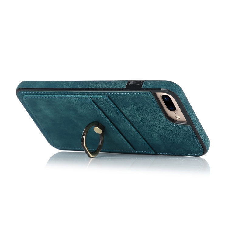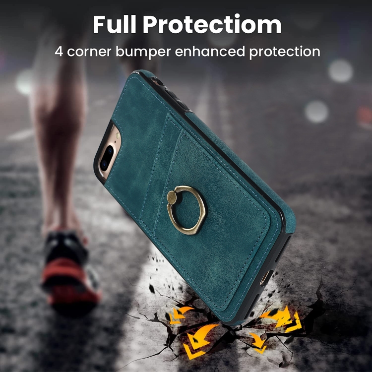 Estuche para Teléfono Cuero con Parche Vintage y Soporte para Anillo iPhone 7 Plus / 8 Plus (Azul)