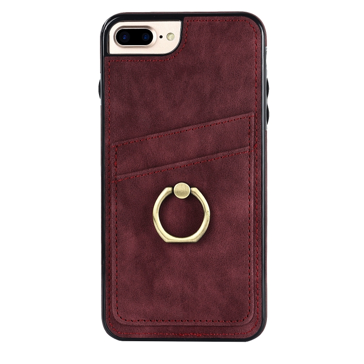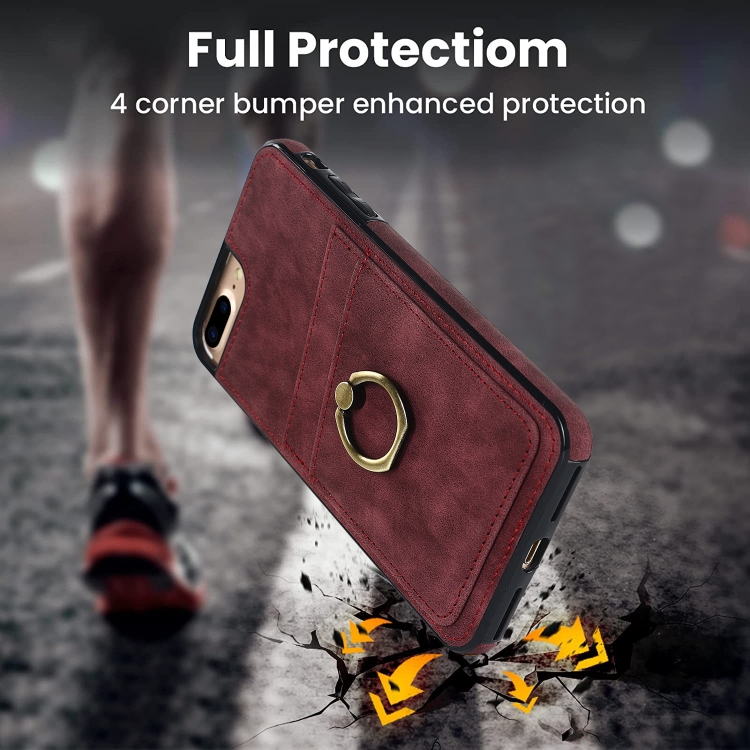 Estuche para Teléfono Cuero Parche Vintage con Soporte Anillo iPhone 7 Plus / 8 Plus (Rojo)