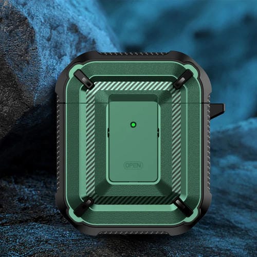 Étui de protection pour écouteurs à texture diamant avec interrupteur et crochet pour Airpods 1/2 (vert)