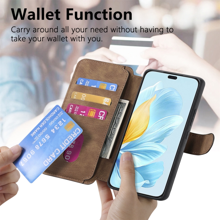 Funda de Cuero For Honor 200 Lite Global Caseneo Magsafe Rfid Retro Antirrobo para Teléfono (Marrón)