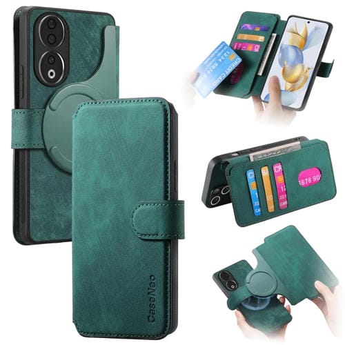 Funda para Teléfono For Honor 90 Caseneo Magsafe Rfid Cuero Retro Antirrobo (Verde)