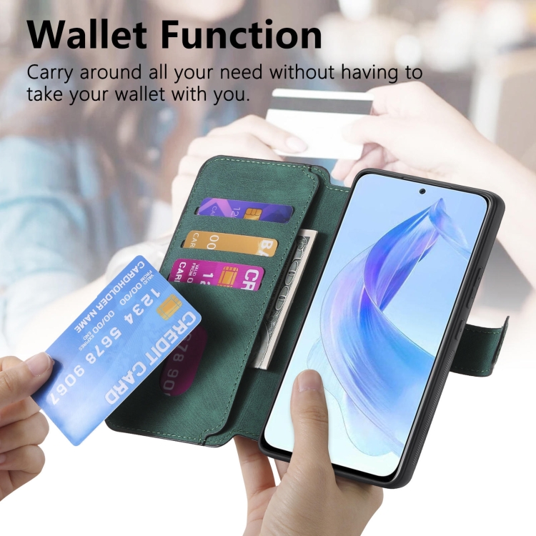 Funda para Teléfono For Honor 90 Lite Caseneo Magsafe Rfid Cuero Retro Antirrobo (Verde)