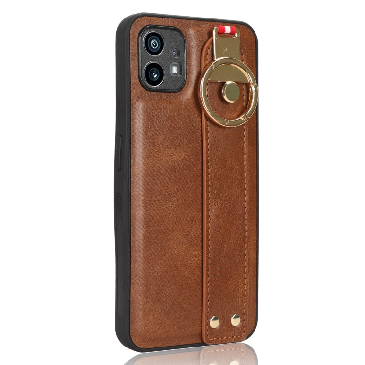 Funda Trasera de Cuero For Nothing Phone 1 con Muñequera (Marrón)