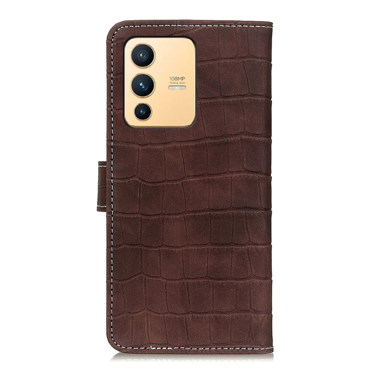 For Vivo S12 / V23 5G Caja de Cuero de la Textura de la Textura del Cocodrilo (Marrón)