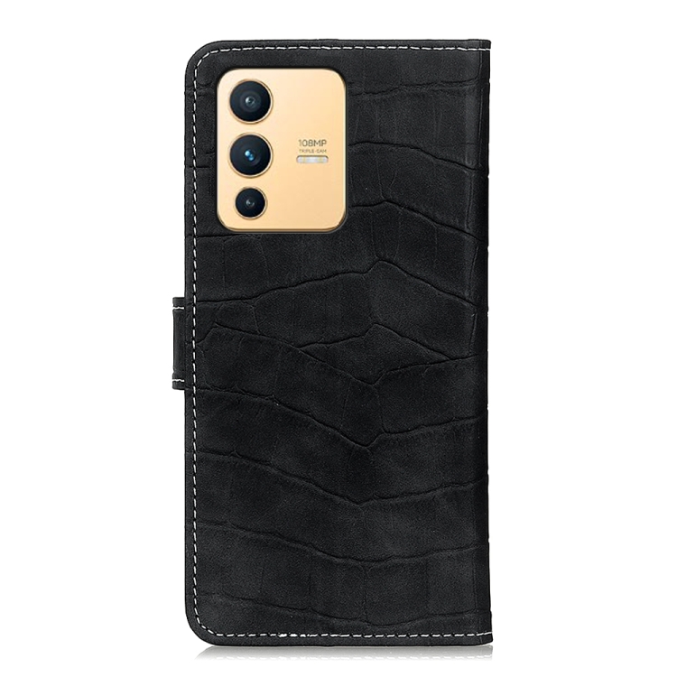 For Vivo S12 / V23 5G Cocodrilo de Cocodrilo Funda de Teléfono de Cuero (Negro)
