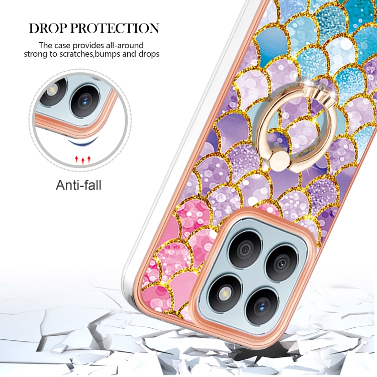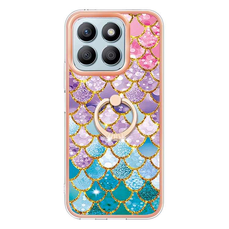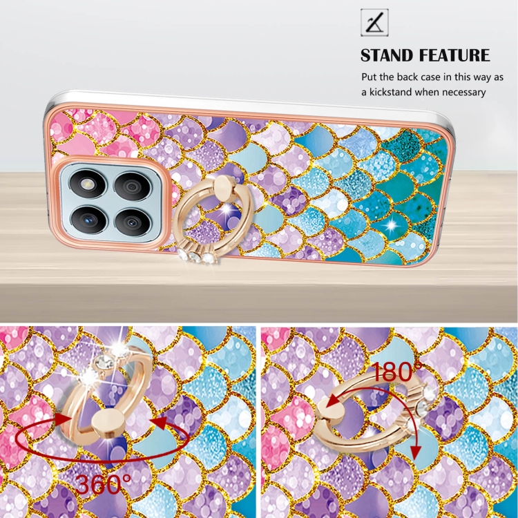 Funda TPU a prueba de golpes con patrón galvanoplastia y soporte anillo para Honor X8B (Escamas de Colores)