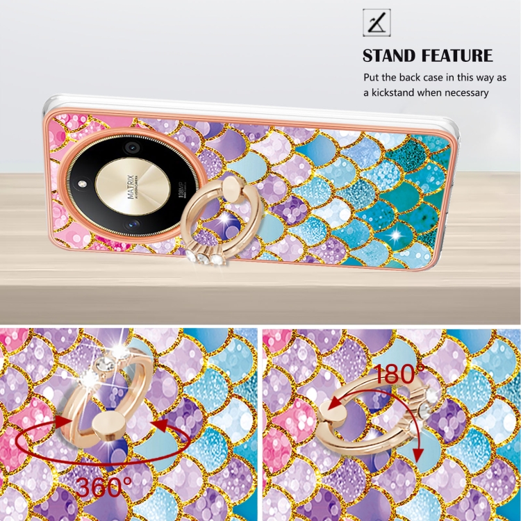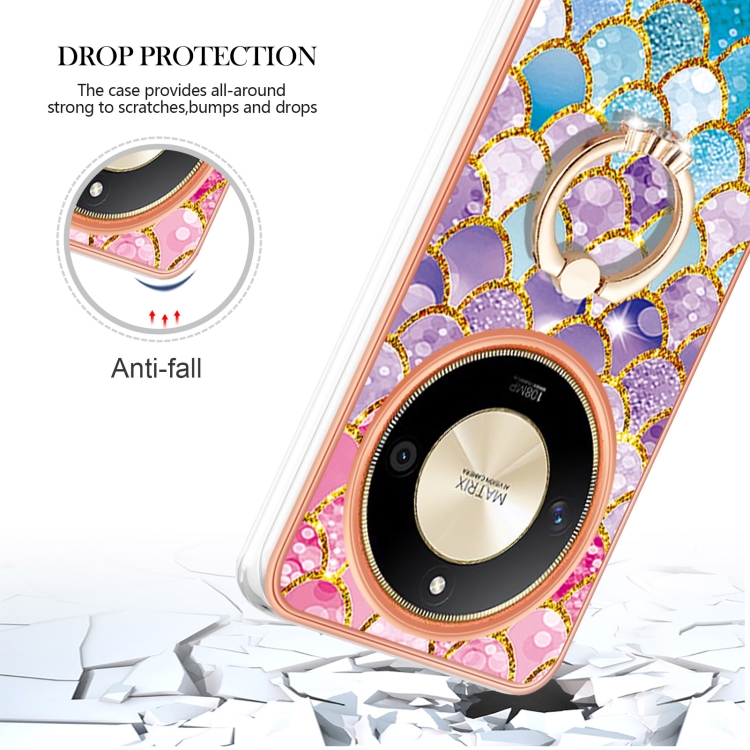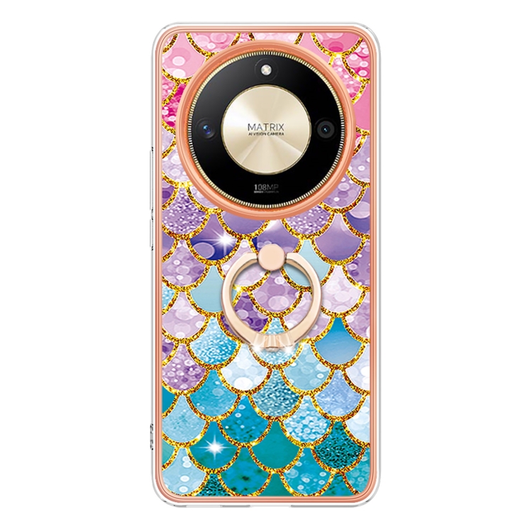 Funda a Prueba de Golpes TPU con Patrón Galvanoplastia y Soporte Anillo para Honor X9B (Escamas de Colores)
