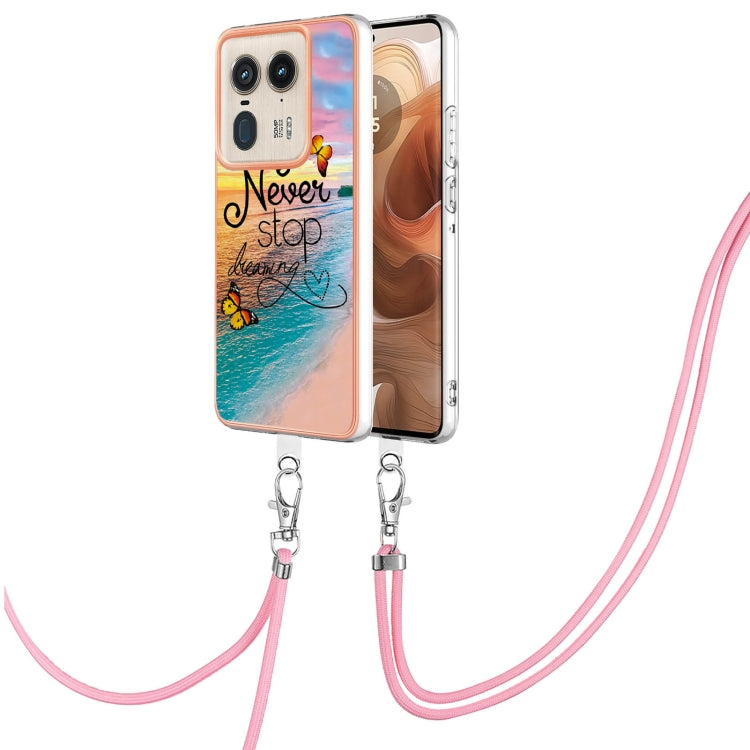 Funda TPU con Patrón Galvanoplastia y Cordón para Motorola Edge 50 Ultra (Mariposa Persiguiendo Sueños)