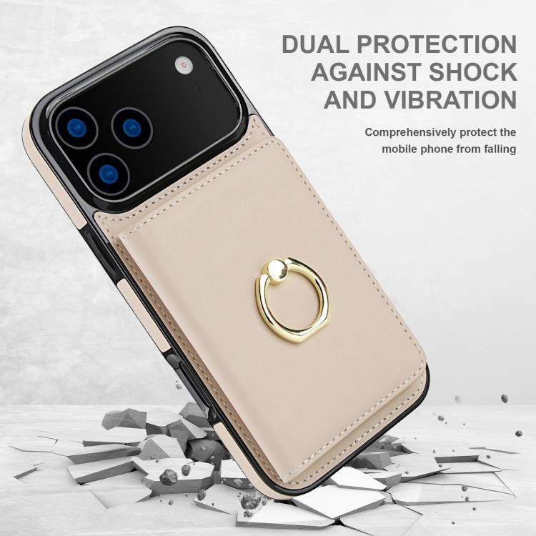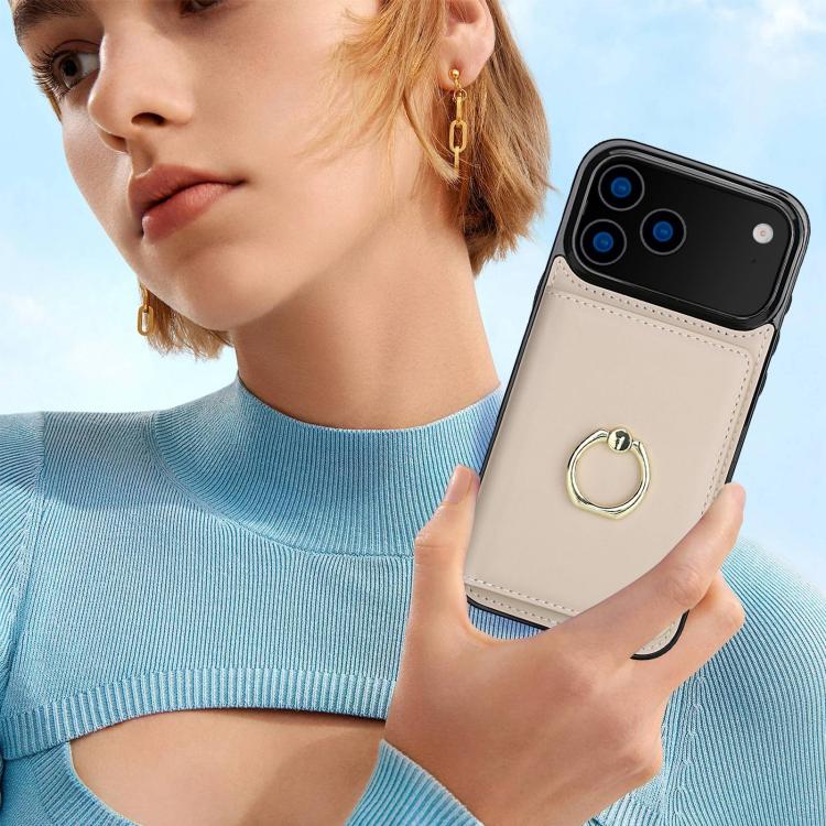 Funda antirrobo RFID para iPhone 17 Pro Max con anillo para tarjetas (blanca)
