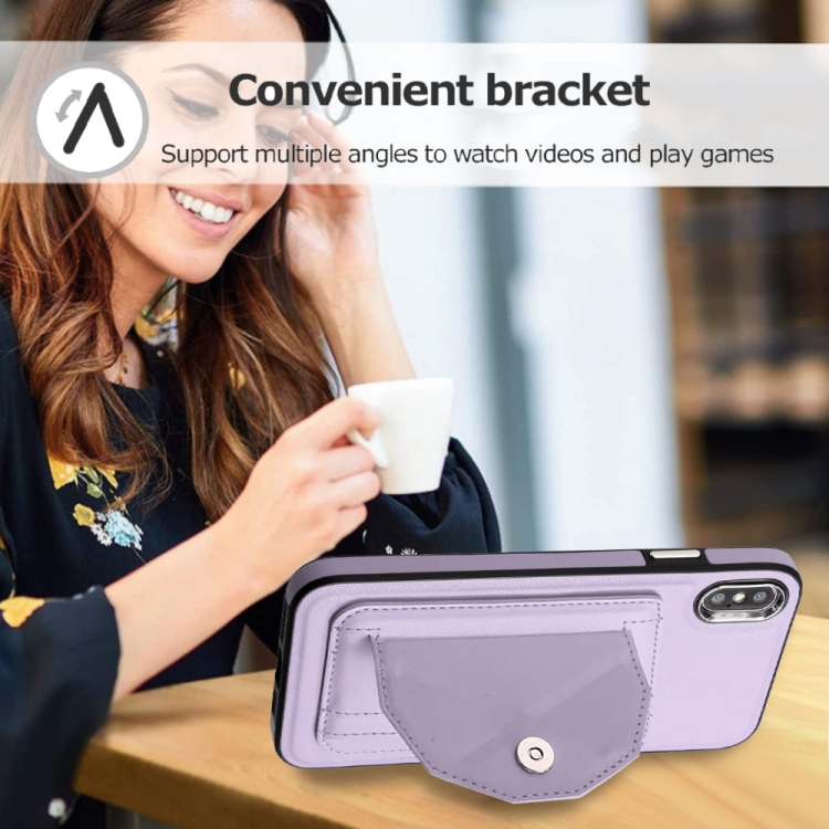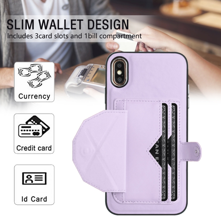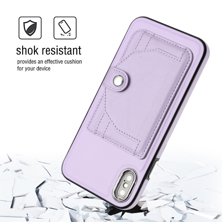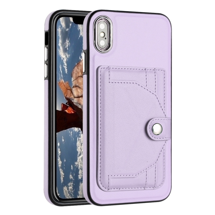Funda de Cuero iPhone Xs Max a Prueba de Golpes con Tarjetero (Púrpura)