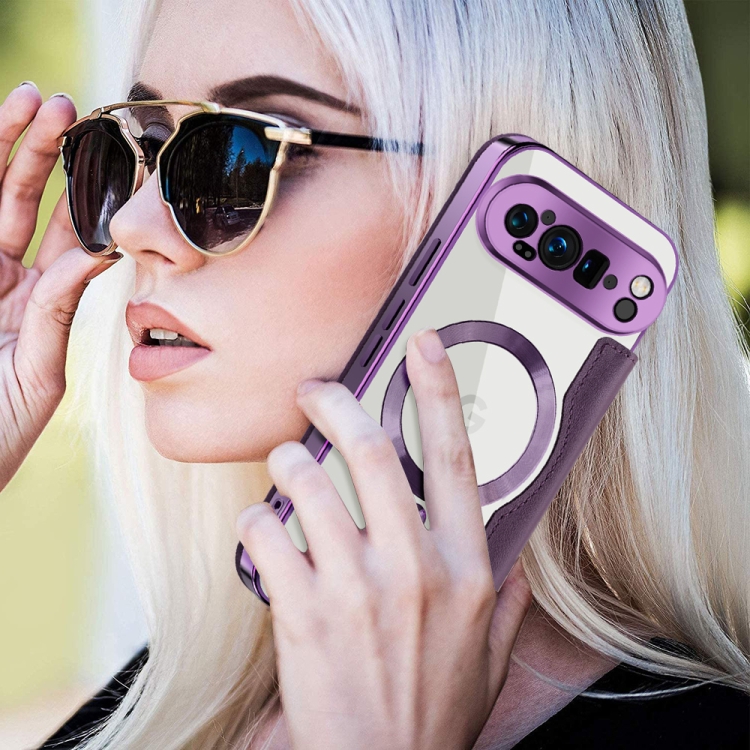 Funda de Cuero Antirrobo con Protección Rfid Magsafe para Google Pixel 9 Pro (Morada)