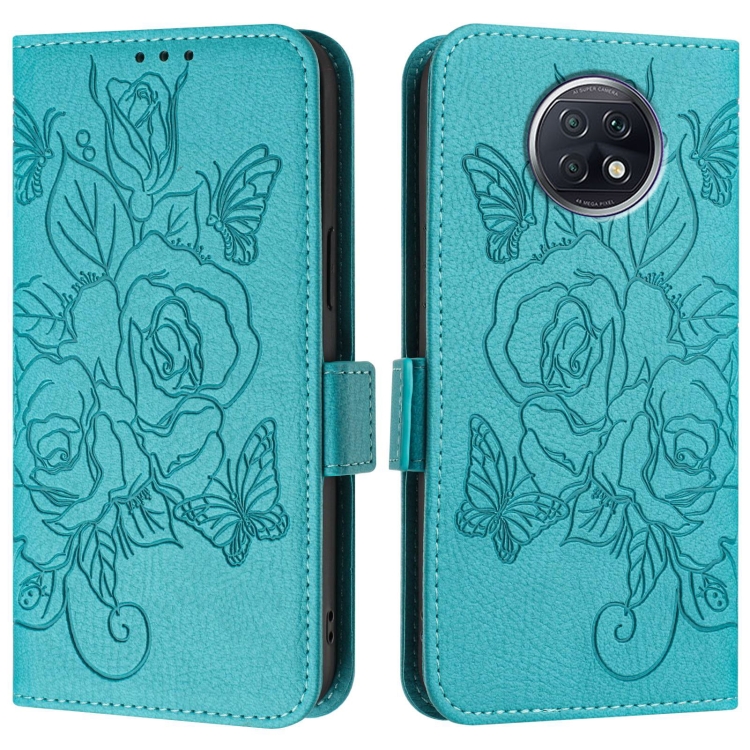 Funda de Cuero Antirrobo con Rfid y Diseño En Relieve para Redmi Note 9T (Azul Claro)