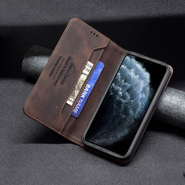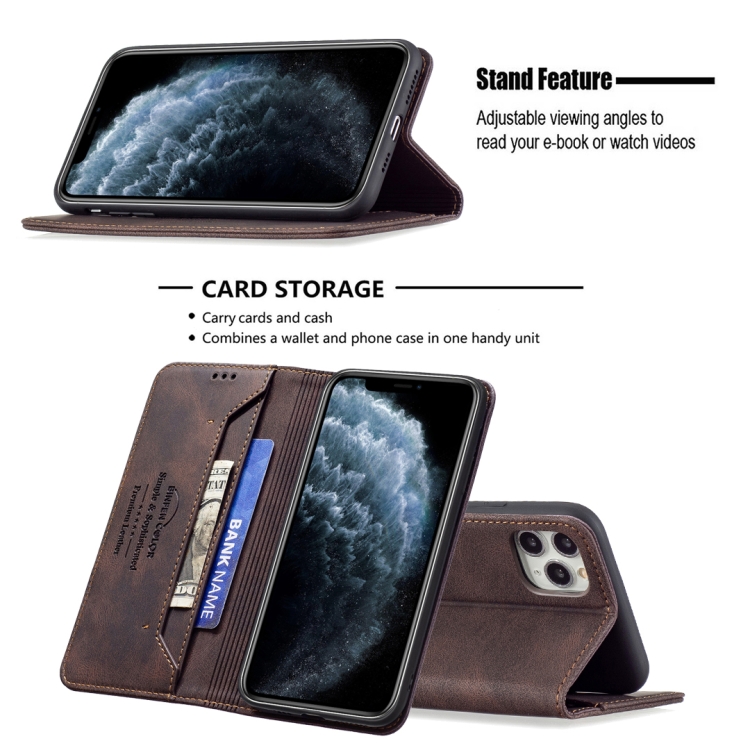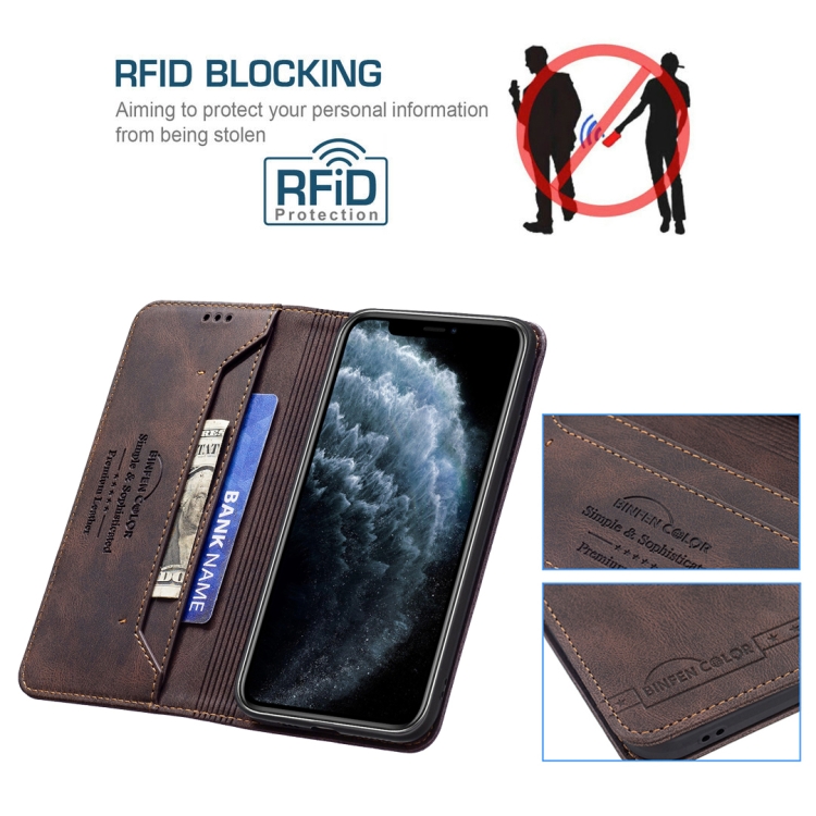 Funda de Cuero Antirrobo con Bloqueo RFID Soporte Tragamonedas Billetera para iPhone 11 Pro Max (Brown)