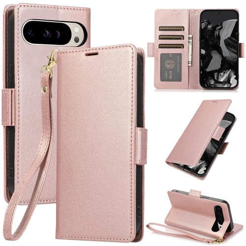 Funda de Cuero Antirrobo RFID con Hebilla Lateral para Google Pixel 9/9 Pro (Oro Rosa)