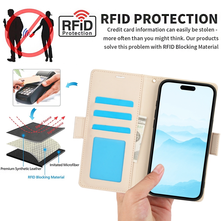 Funda de Cuero Antirrobo Rfid con Hebilla Lateral para iPhone 16 Plus (Albaricoque)
