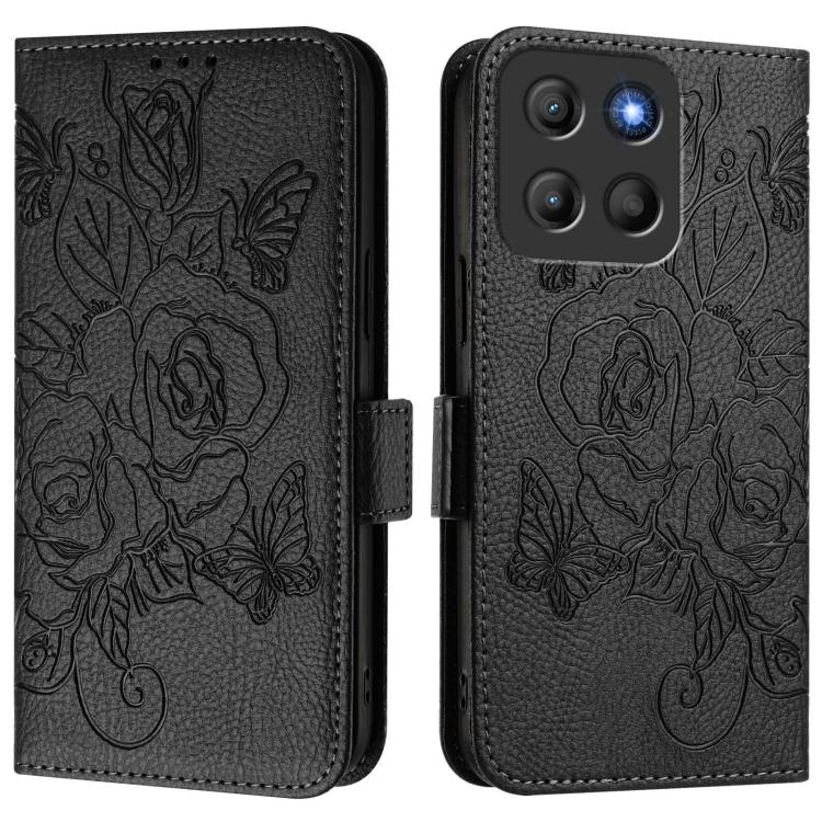 Funda de Cuero Antirrobo RFID con Relieve para Motorola Moto G15 (Negra)