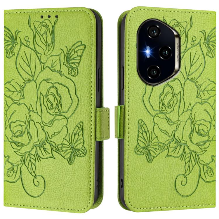Funda de Cuero Antirrobo RFID con Relieve Rosa para Honor 300 Pro 5G y 300 Ultra 5G (Verde)
