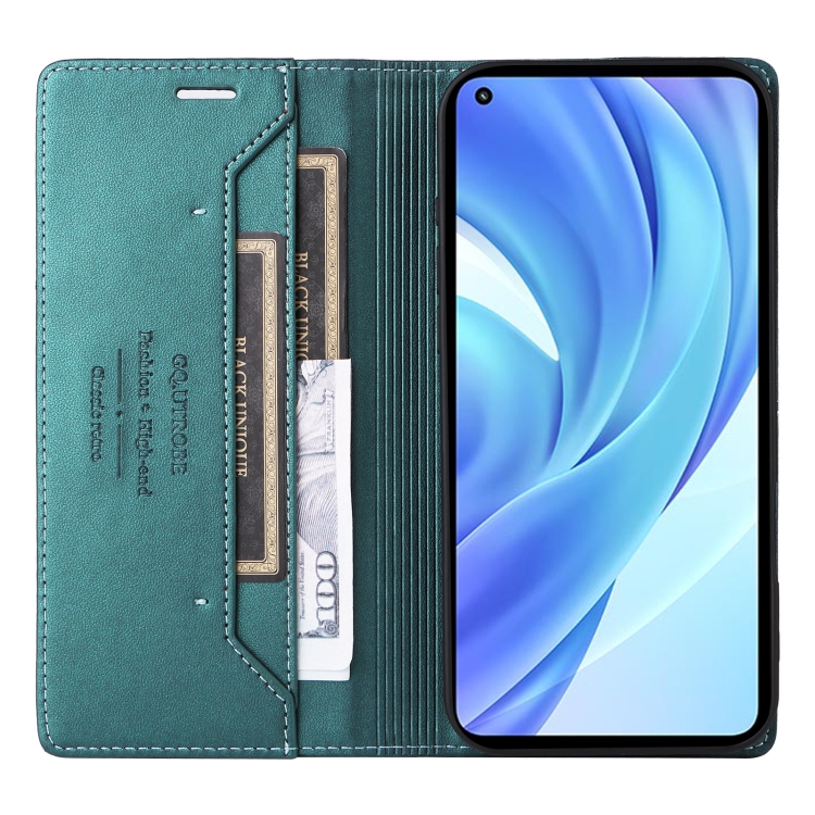 Funda de Cuero Antirrobo Rfid Gqutrobe G01 para Xiaomi Mi 11 Lite (Verde)