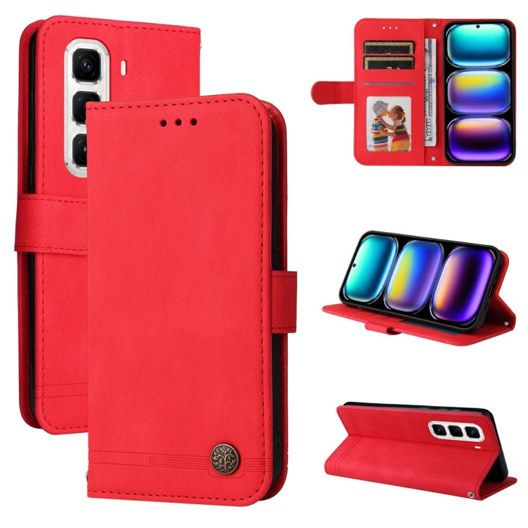 Funda de Cuero para Infinix Hot 50 Pro+ 4G con Botones de Metal y Diseño Árbol de la Vida (Rojo)