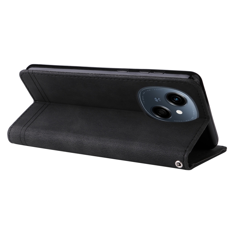 Funda de Cuero para Tecno Spark Go 1 / Pop 9 / Spark Go 2025 con Botones de Metal y Diseño Árbol de la Vida (Negro)