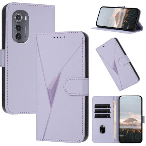 Funda de Cuero con Cierre de Hebilla y Diseño Triangular para Motorola Edge 2022 (Morado Claro)