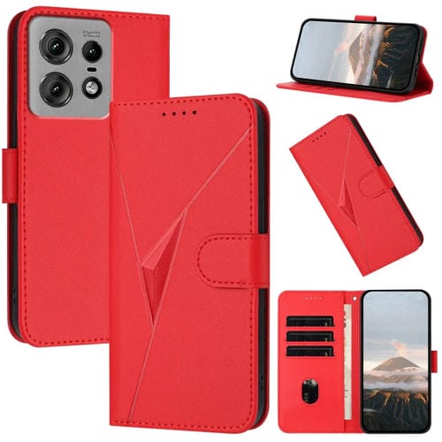 Funda de Cuero Motorola Edge 50 Pro con Cierre de Hebilla y Diseño Triangular (Rojo)