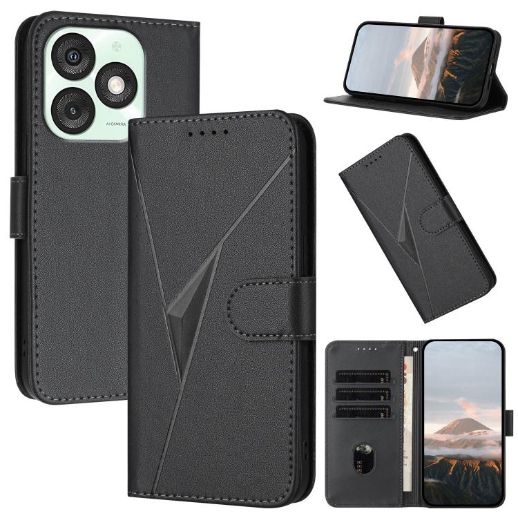 Funda de Cuero Itel A50 con Cierre de Hebilla y Diseño Triangular (Negro)