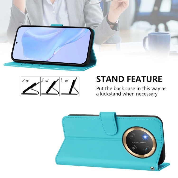 Funda de Cuero con Textura de Piel y Cordón para Honor X9C 5G (Azul Lago)