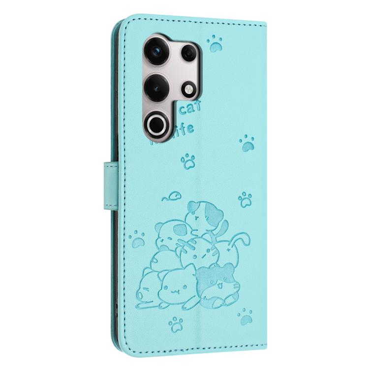Funda de Cuero con Cordón para Teléfono Itel S25 Ultra Diseño Gatito (Verde Menta)