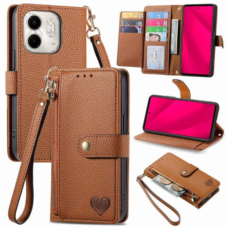 Funda de Cuero Love con Cordón y Cremallera para Infinix Smart 9 (Marrón)