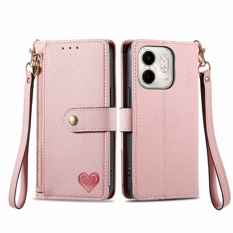 Funda de Cuero con Cordón y Cremallera Love para Infinix Smart 9 (Rosa)
