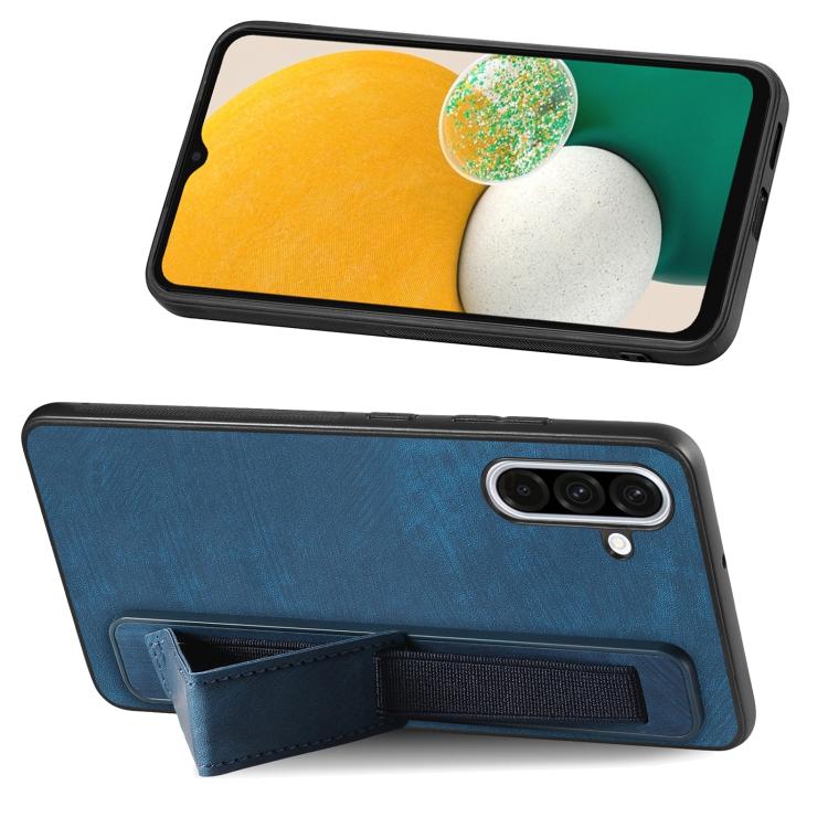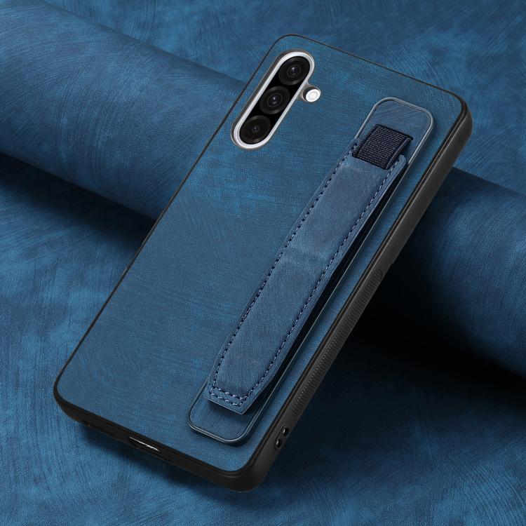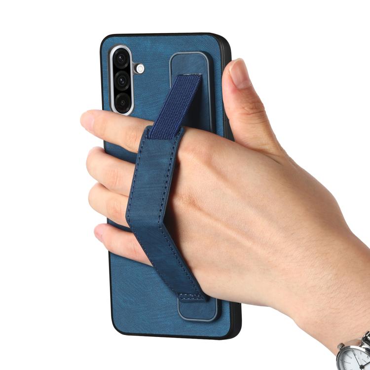 Funda de Cuero para Samsung Galaxy A36 con Correa para Muñeca Estilo Retro (Azul)