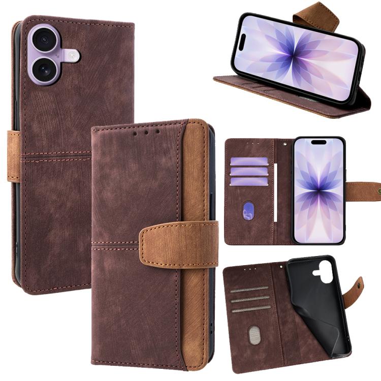 Funda de cuero con costuras de color y tacto suave para iPhone 17 (marrón)