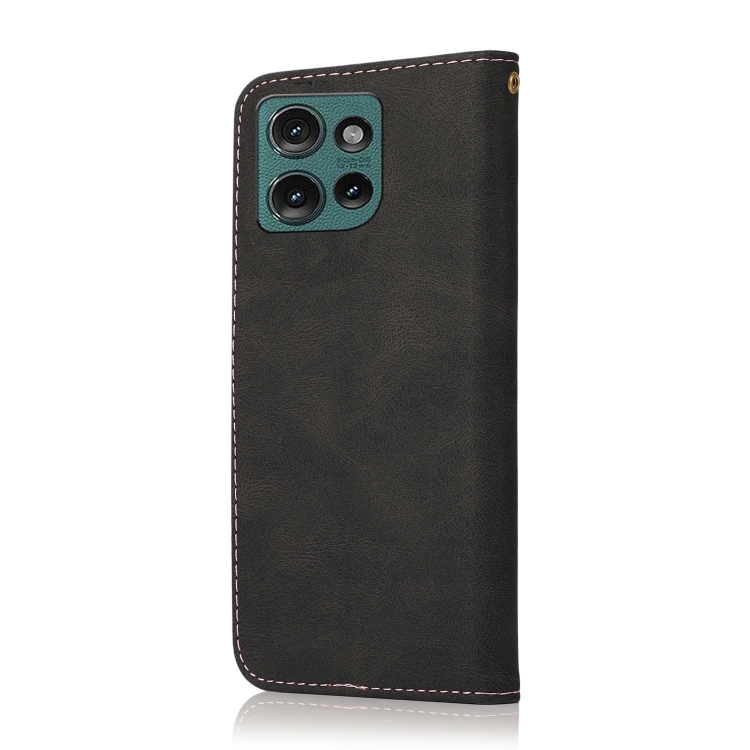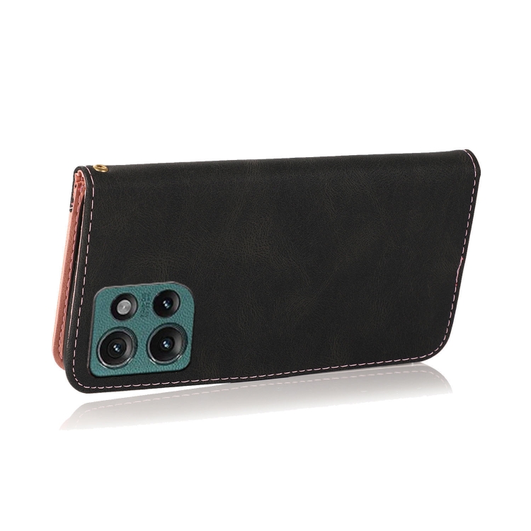 Funda de Cuero con Costuras Dos Colores para Motorola Edge 50 5G (Negro y Oro Rosa)
