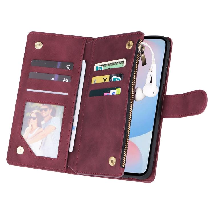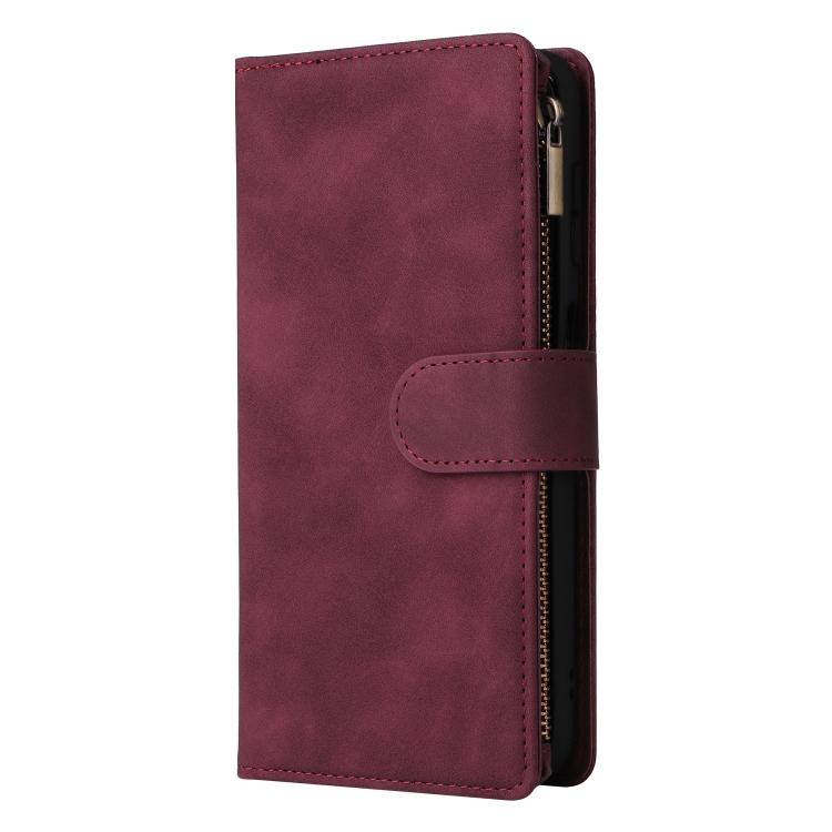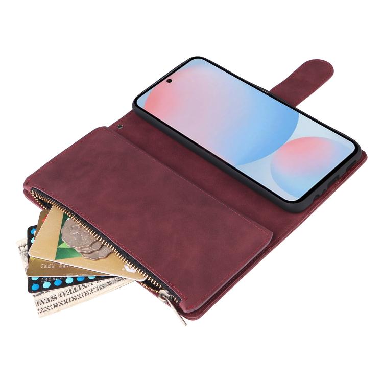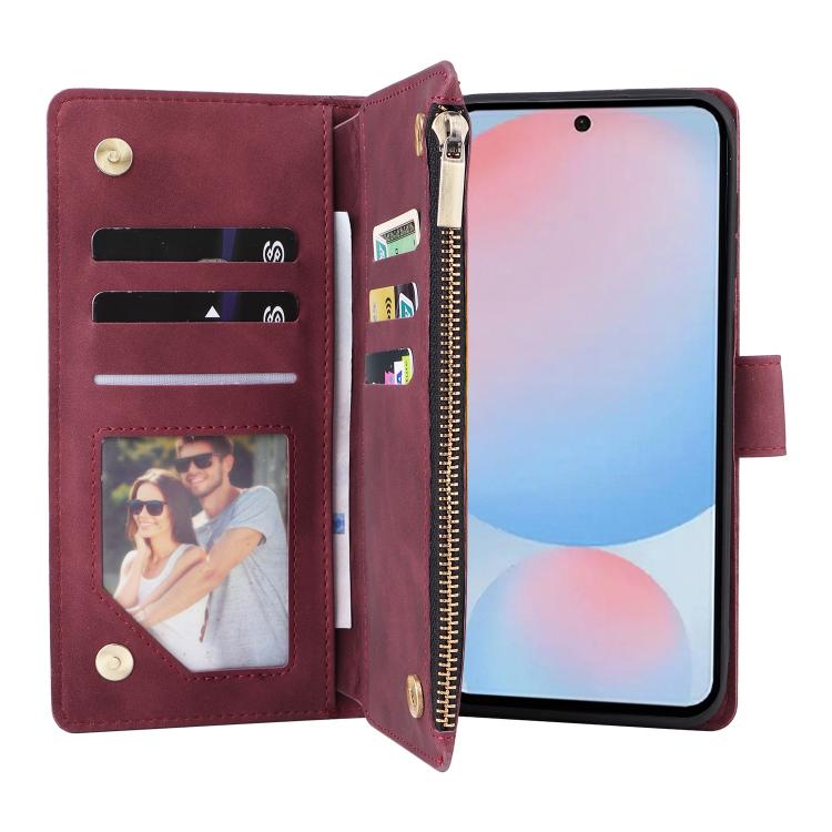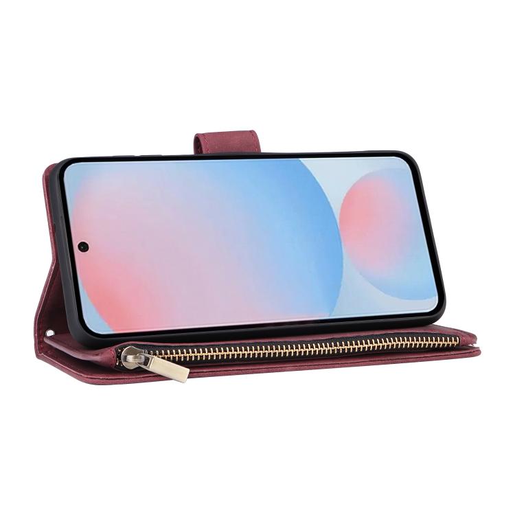 Funda de Cuero para Samsung Galaxy A56 5G con Cremallera Multifuncional (Rojo Vino)
