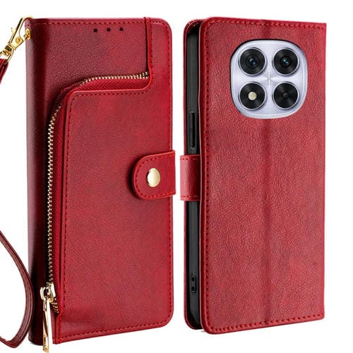 Funda de Cuero con Cremallera para Redmi Note 14 Pro 5G (Roja)