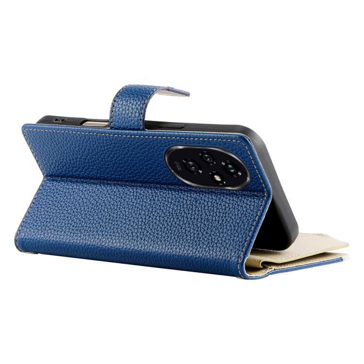Funda de cuero con cremallera para teléfono con múltiples tarjetas y costuras para Honor 200 (azul oscuro)