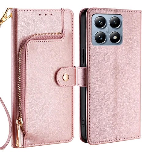 Funda de Cuero con Cremallera para Teléfono Xiaomi 14T Pro 5G (Oro Rosa)