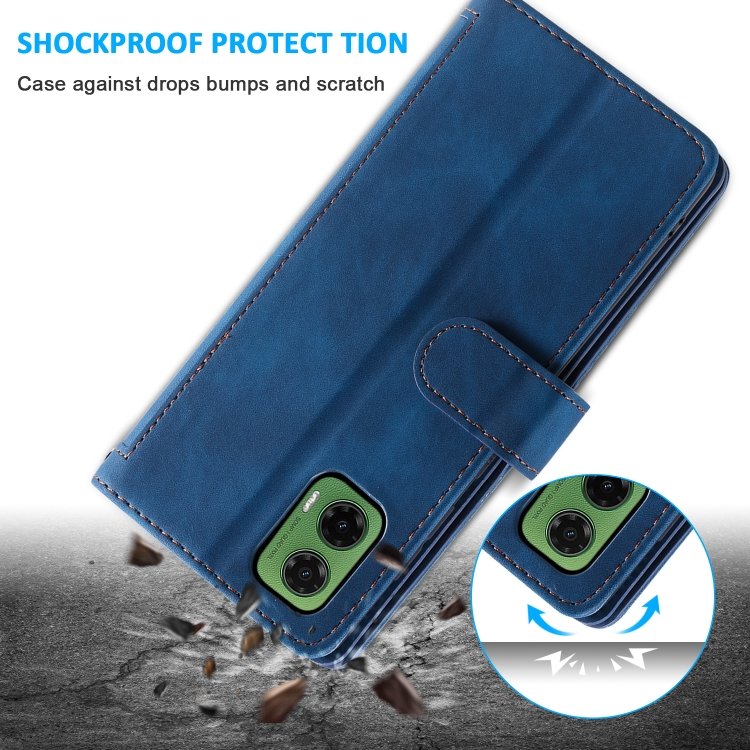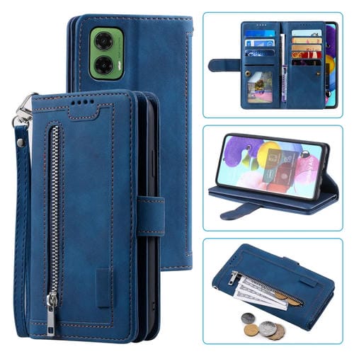 Funda de Cuero con Cremallera y Cordón para Motorola Moto G35 Nine Card (Azul)